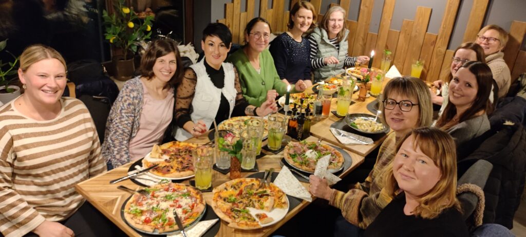 Die Zumba-Gruppe hat ihre gruppeninterne „Weihnachtsfeier“ mit Kegeln und Pizza und Pasta im Januar nachgeholt.
